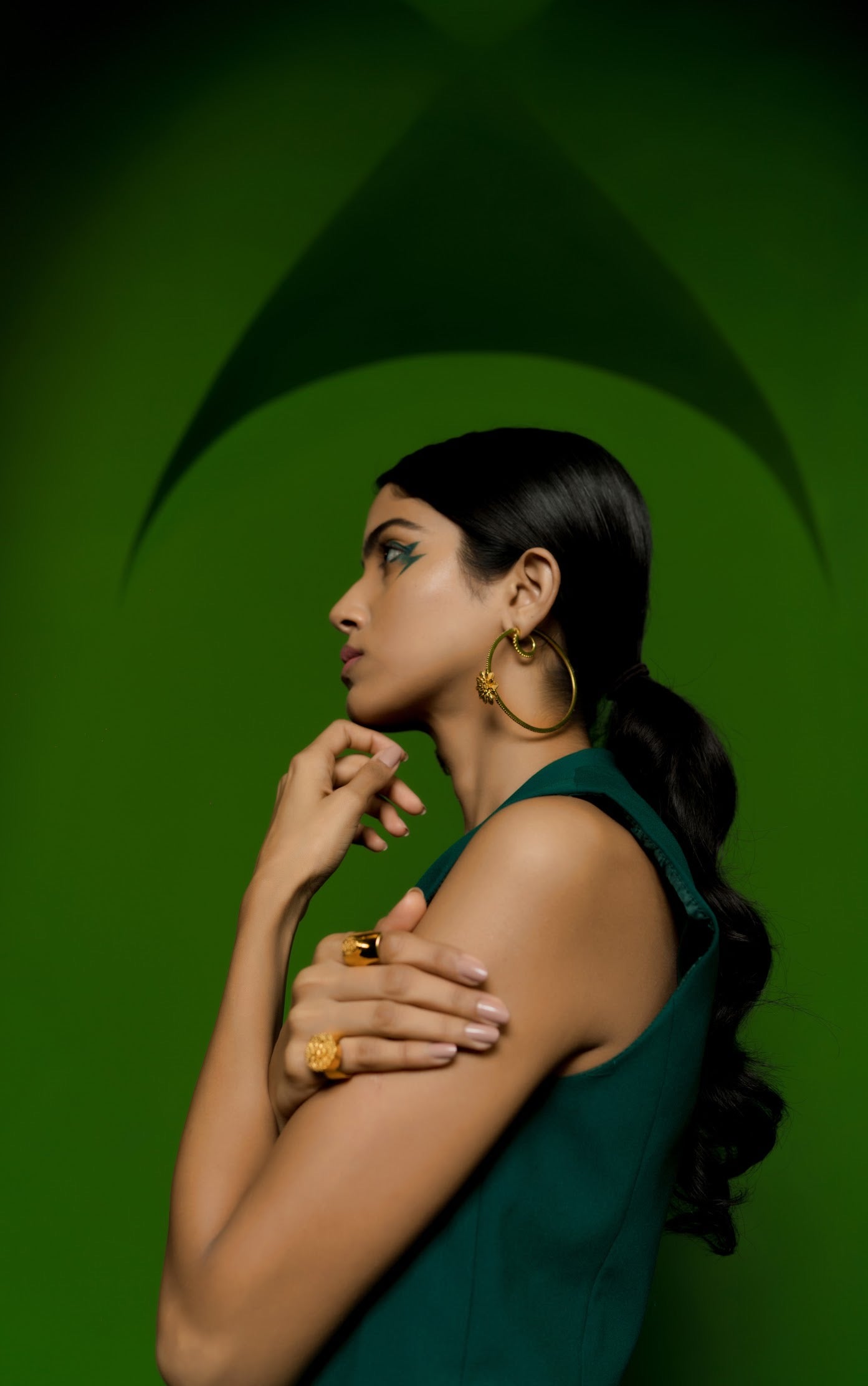 Handcrafted in recycled brass with 18K gold-plating to premium jewellery standards